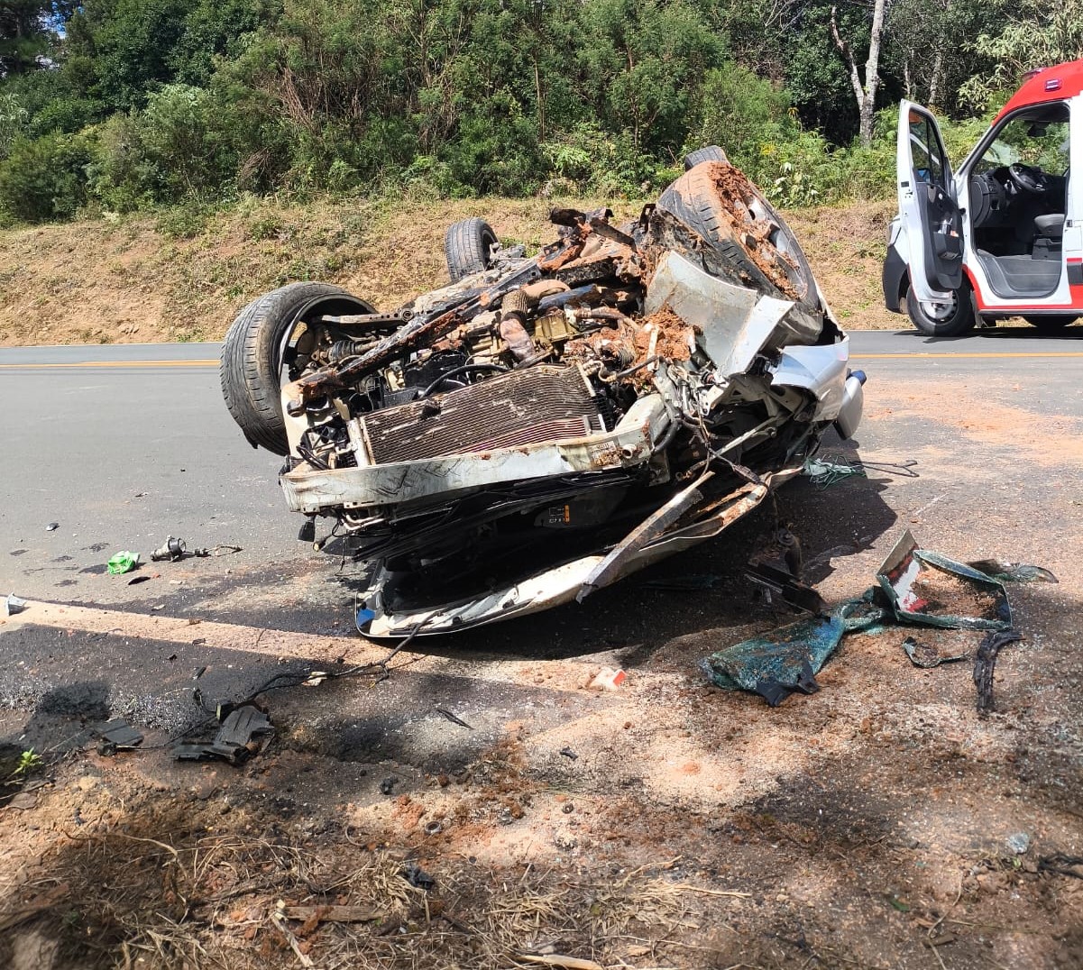 Colisão frontal na BR-282 deixa veículo capotado e condutor ferido em[...]