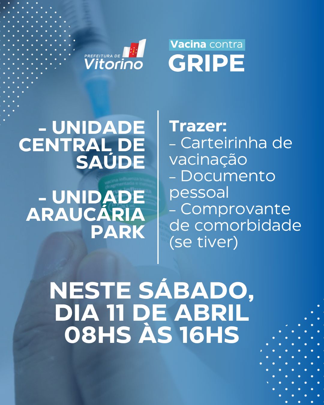 Dia D contra a gripe em Vitorino terá vacinação e atrações para famílias[...]