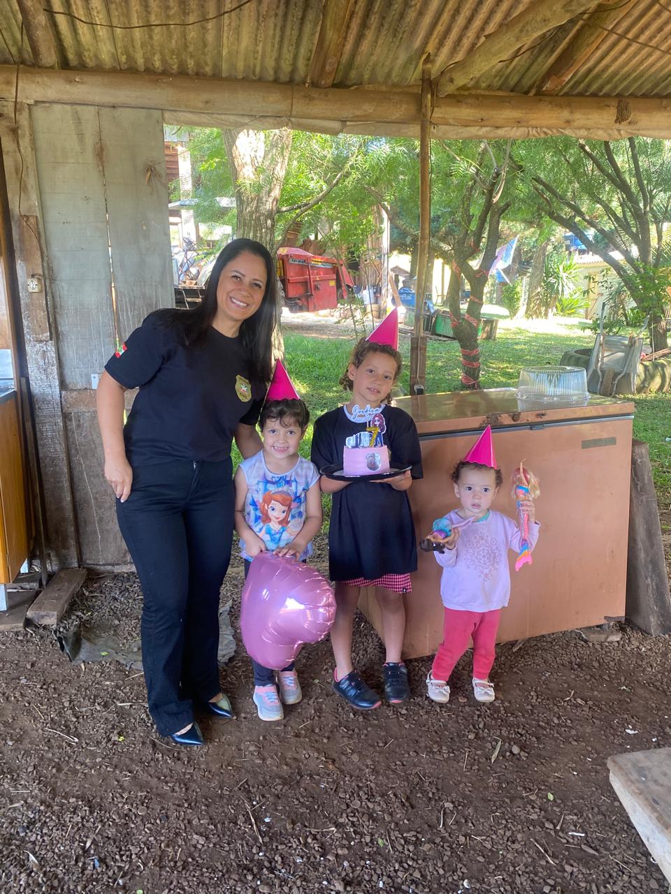 A surpresa aconteceu na Linha São Brás, na casa da família de Jordana Fantini, que comemorou 7 anos de vida. Mas o que tornou o dia ainda mais especial foi a presença dos policiais civis, que foram até a residência para celebrar junto com a pequena aniversariante.