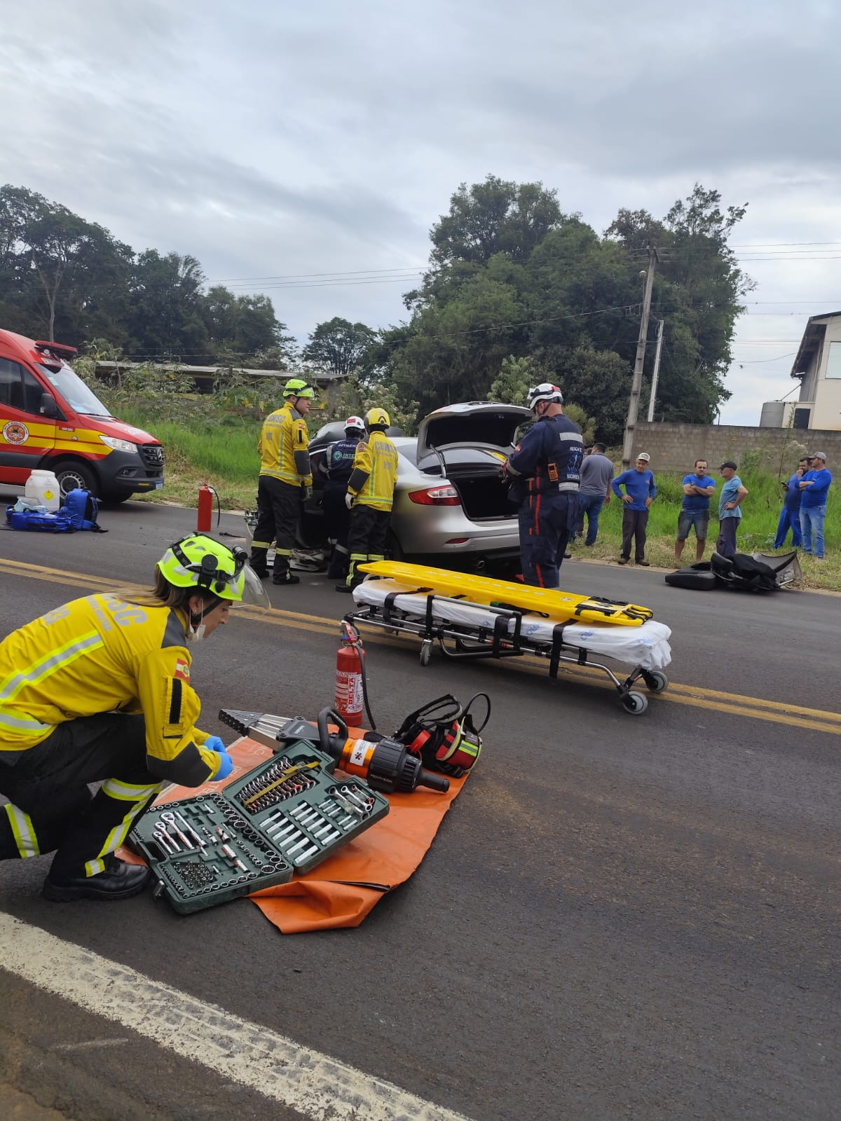 Antes da chegada dos bombeiros, uma equipe da Uninter, que passava pelo local no momento do acidente, iniciou os primeiros atendimentos e realizou a estabilização inicial da vítima.
