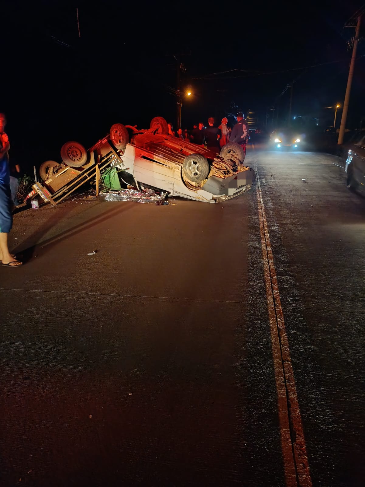 A colisão envolveu um Fiat Uno e um Toyota Corolla. Com o impacto, o Uno acabou capotando na pista. O veículo ainda tracionava uma betoneira na parte traseira no momento do acidente.