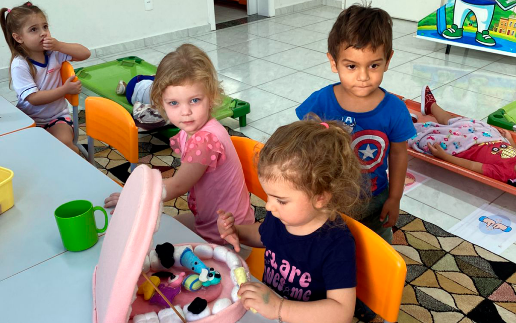 Para tornar o processo mais natural e acolhedor, a equipe utiliza recursos lúdicos durante as atividades. Entre eles estão bonecos educativos, modelos ampliados da arcada dentária infantil e outros materiais que permitem às crianças interagir enquanto aprendem sobre escovação e cuidados com a saúde bucal. “Como para muitas crianças o consultório ainda é algo desconhecido, o medo acaba sendo natural. Com essas atividades lúdicas, elas criam afinidade conosco e passam a encarar o atendimento de forma mais tranquila”, destaca Andreia.