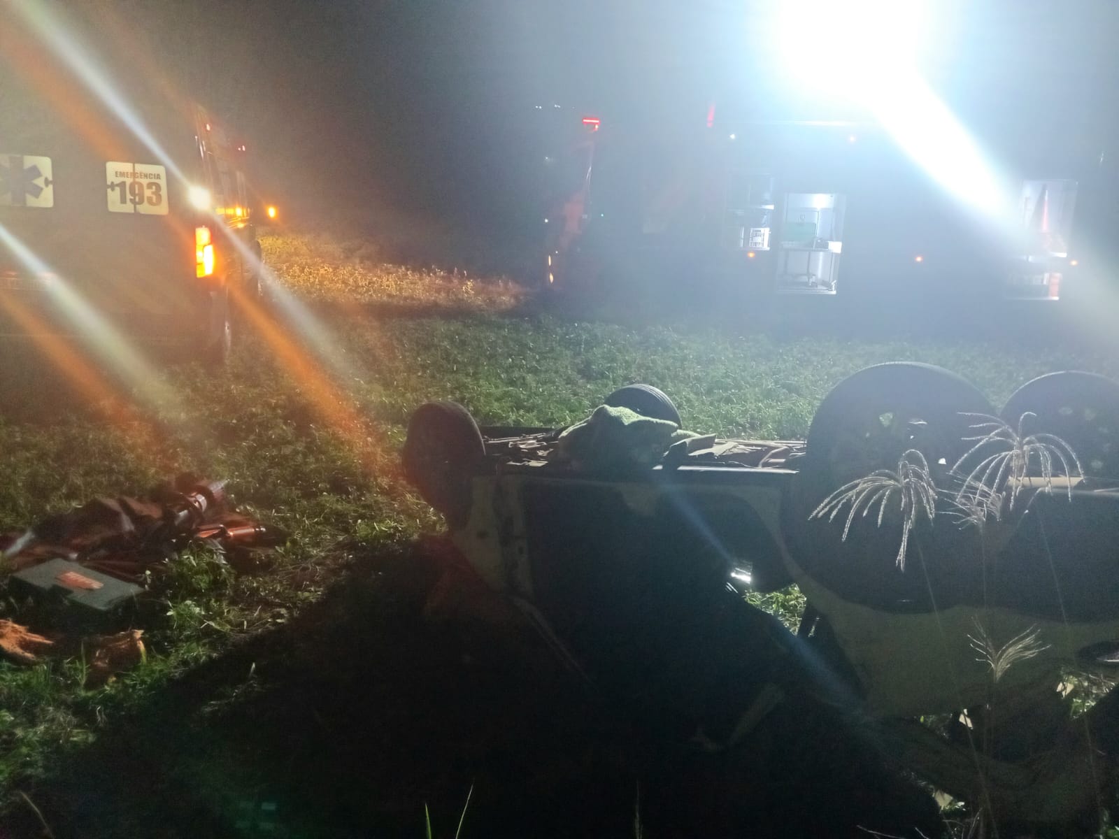 O motorista de um carro ficou preso no interior após o veículo sair de pista e capotar em uma lavoura às margens da SC-480, em Ipuaçu, na noite desta sexta-feira (3). A vítima, única ocupante do carro, estava consciente, orientada e sem ferimentos aparentes, mas ficou com o braço preso no interior do veículo.