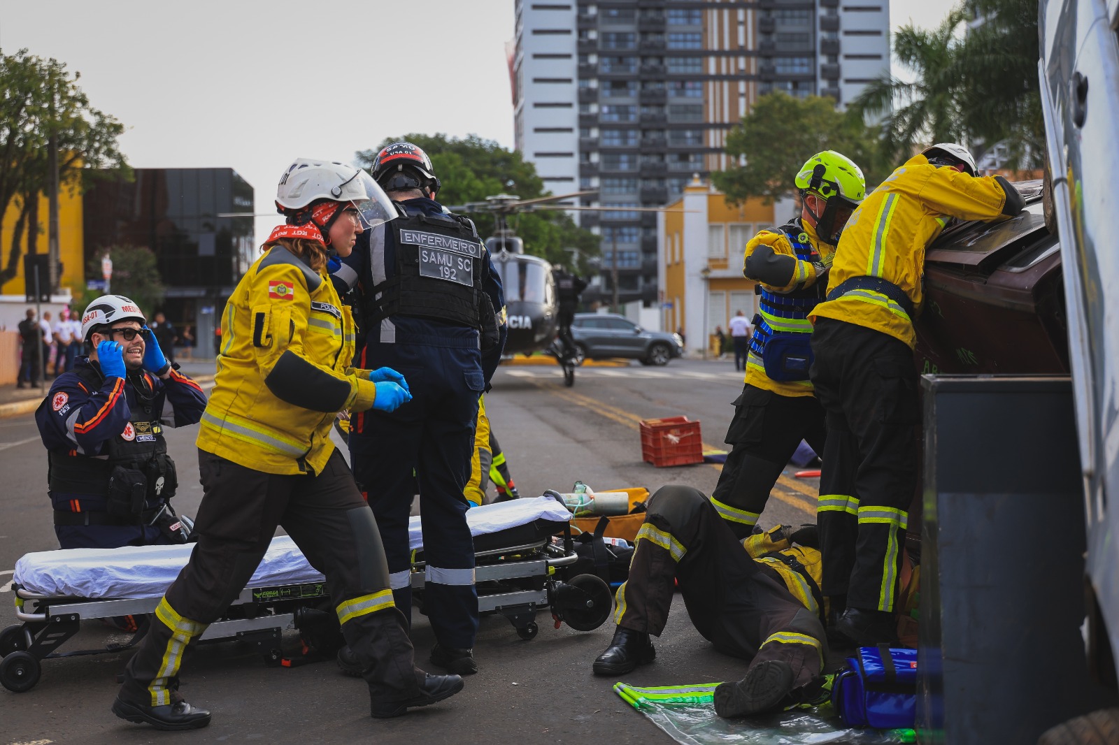 O treinamento teve como principal objetivo demonstrar o preparo técnico das equipes e reforçar a importância da atuação integrada entre os órgãos de emergência. Participaram da operação a Polícia Militar de Santa Catarina (PMSC), o Serviço de Atendimento Móvel de Urgência (SAMU), a Guarda Municipal de Chapecó e o Serviço Aeropolicial de Fronteira (SAER), que realizou uma manobra de aproximação para resgate aeromédico.