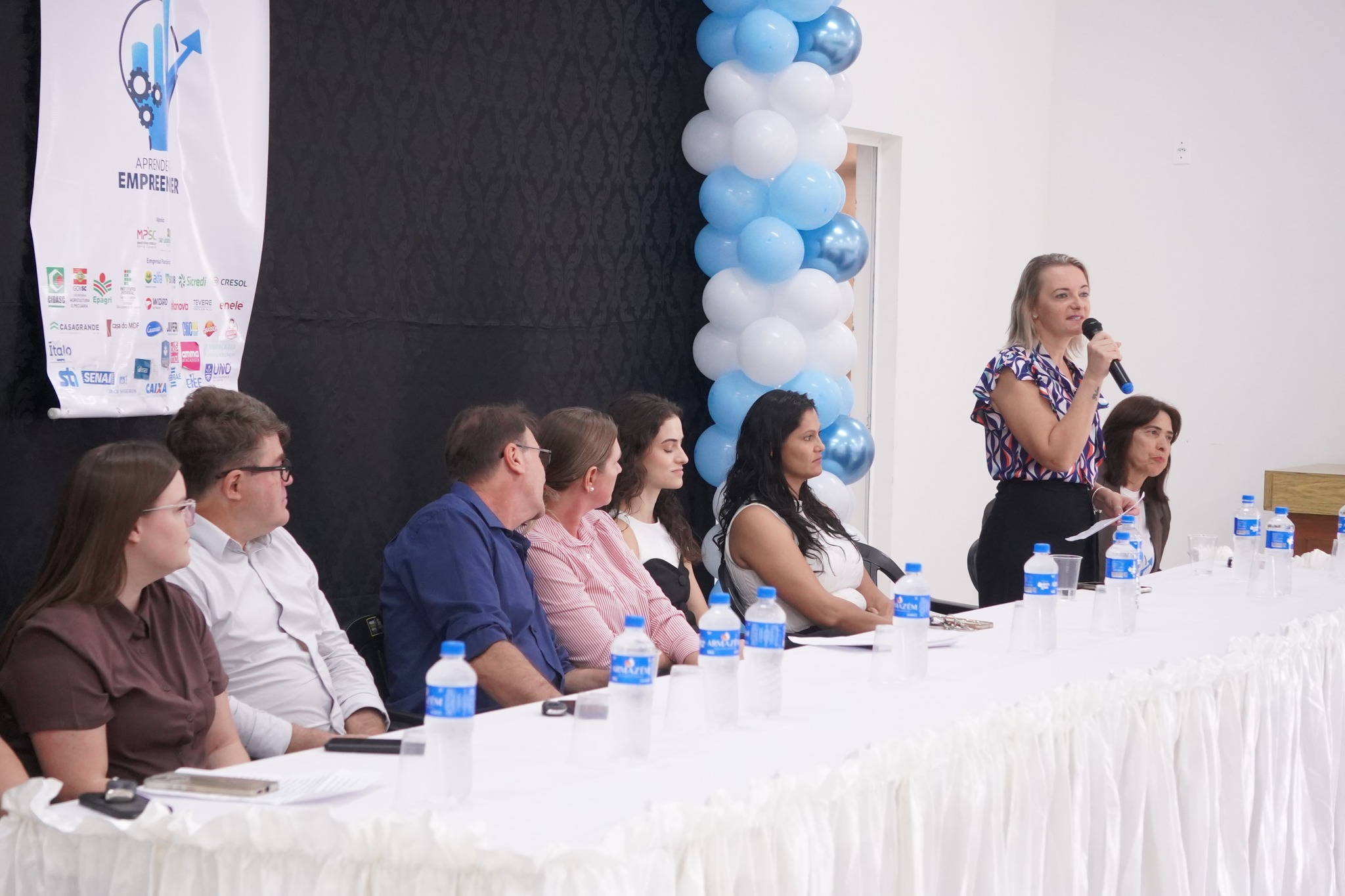 A manhã desta sexta-feira (17) marcou o início da primeira turma do projeto Aprender a Empreender em Novo Horizonte. A abertura oficial foi realizada no Centro dos Idosos e reuniu autoridades municipais, representantes da educação, do Ministério Público (MP), comunidade escolar e parceiros institucionais. A iniciativa é voltada a estudantes do 8º e 9º ano do Ensino Fundamental e busca estimular a cultura empreendedora entre os jovens do município.