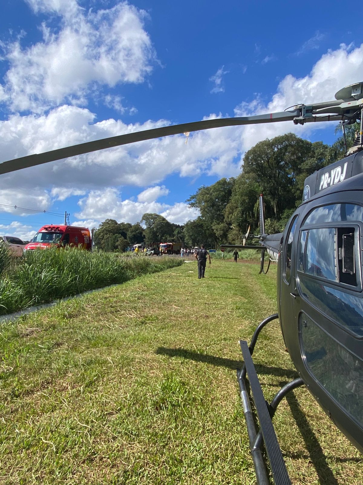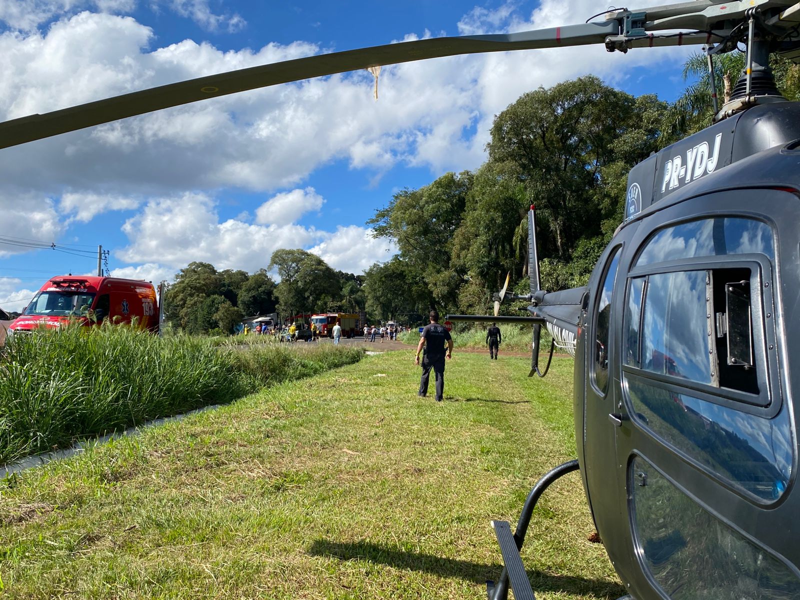 A aeronave do SAER-Fron, com equipe da Polícia Civil e profissionais do SAMU/Aeromédico, chegou a ser acionada, mas, após avaliação, constatou que as vítimas apresentavam apenas escoriações leves, permanecendo sob os cuidados das equipes dos bombeiros.