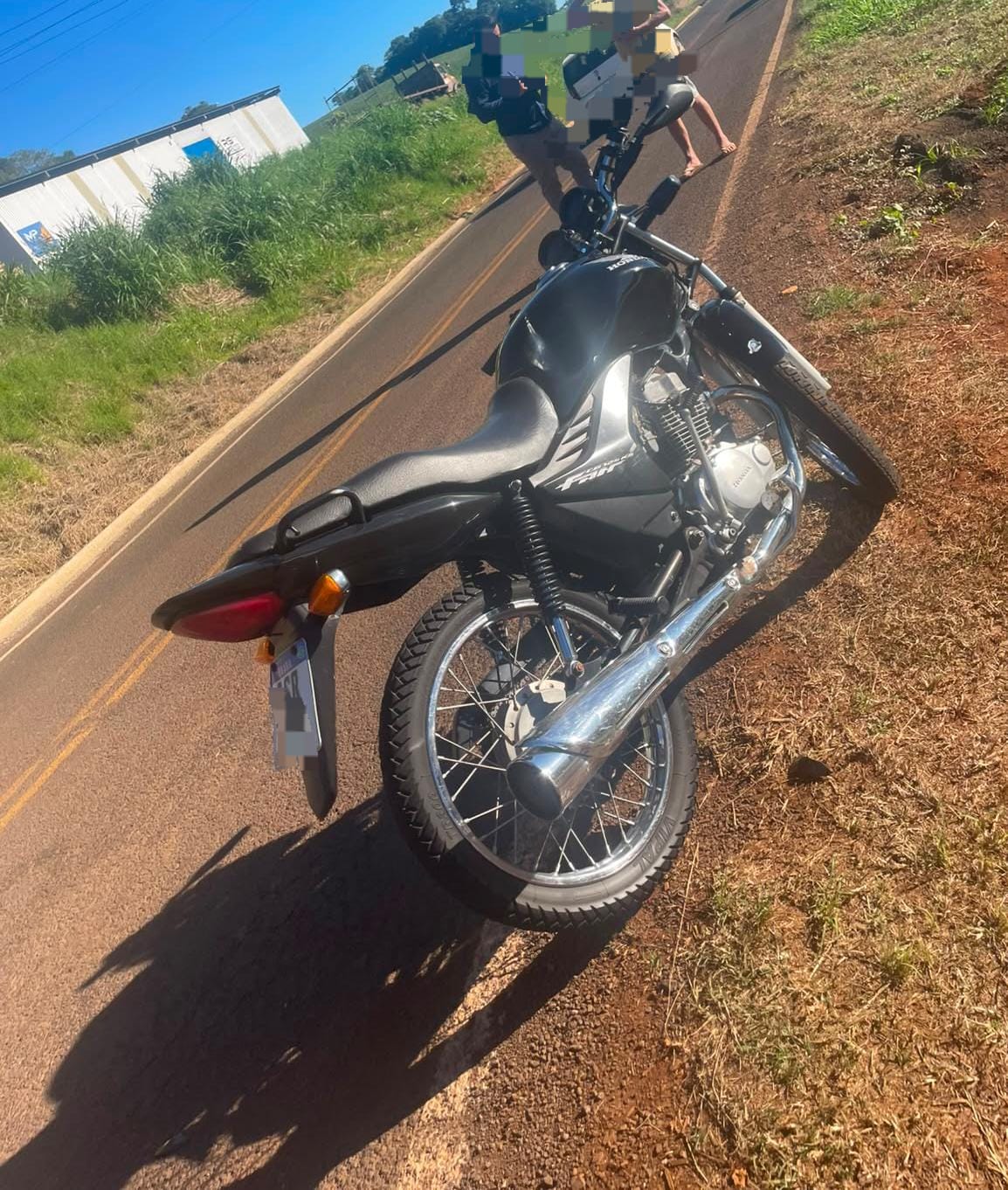 A guarnição foi acionada a respeito de um Sinistro de trânsito com danos materiais e lesões corporais. Chegando no local deparou-se com um sinistro de trânsito do tipo colisão traseira envolvendo um veiculo FIAT PUNTO emplacado no município de Águas Frias SC conduzido por uma mulher de 24 e a motocicleta HONDA CG 125 Fan pilotada por um homen de 23 anos. No local é uma tangente em nivel com boa visibilidade pavimentação e sinalização, velocidade máxima permitida de 40km/h. Nos veículos registrado danos de pequena monta.